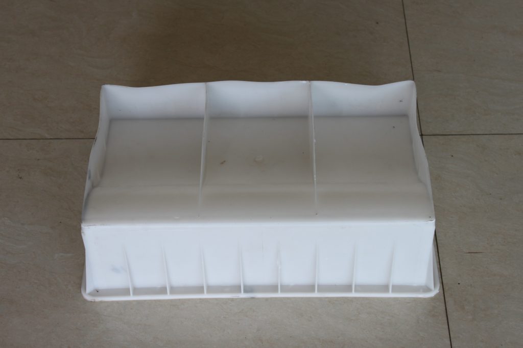 此處側石模具結構以S型設計,采用聚丙烯注塑加工而成。由于水泥制品本身密度較高,重量較沉,所以專業的路側石模具廠家基本都會在模具表體增加加強筋構造,避免在實際水泥側石澆筑過程中導致模具變形,而造成不必要的損失。