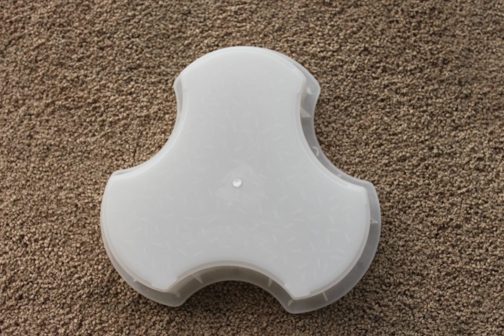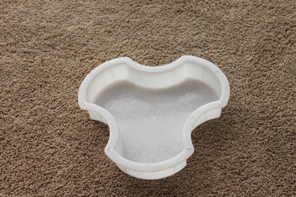 這是一款極具個性化的人行道彩磚模具,采用了較為少見的三葉草形狀設計。仔細觀察模具底部你可以發現有很多小橫條不規則的遍布于整個彩磚模具,這有什么用處呢?很明顯,既然稱之為人行道彩磚模具,那么主要所制水泥彩磚肯定是用于方便行人,類似小橫條在水泥彩磚脫模后可以起到磚面防滑功能,確保人行道路面美觀的同時更加安全。
