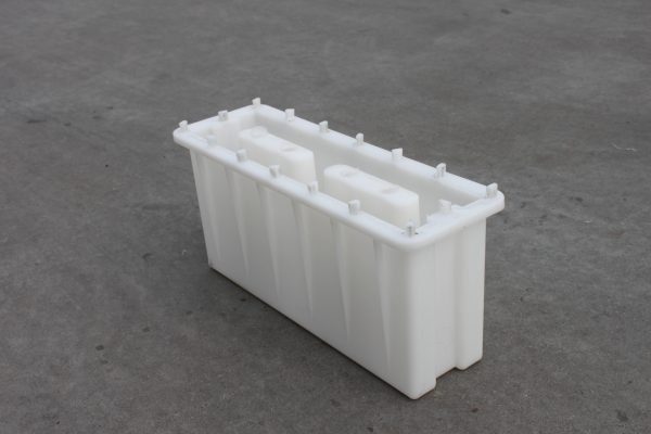 而這個(gè)塑料空心磚模具主要采用兩孔設(shè)計(jì),因?yàn)樗嗷炷撩芏容^重,在加上塑料材質(zhì)的模具基本都具備一定韌性,填充量過多易導(dǎo)致模具膨脹使得水泥空心磚成品變形,所在模具四周均采用加強(qiáng)筋設(shè)計(jì),對于防止這種情況的發(fā)生作用還是相當(dāng)穩(wěn)定的。