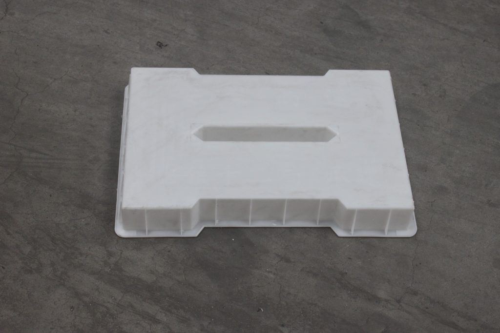 此款為塑料材質(zhì)的路基缺口預(yù)制溝蓋板模具,主要以雙邊缺口及中孔下水橫條設(shè)計(jì),主要用于安紫高速公路路基邊溝建設(shè)。其中所制水泥缺口蓋板厚度高達(dá)10CM,對(duì)于公路邊溝的安全穩(wěn)定意義重大。