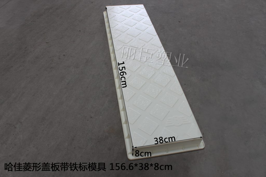 此次哈佳高鐵路段定制了較多尺寸的菱形踏步蓋板模具,此156.6*38*8CM為尺寸最大一款,另外還有小款78*31.5*8CM及中款156.6*38*8CM,多尺寸規(guī)格對于水泥踏步蓋板的預(yù)制也帶來更大的方便及收益,對于施工效率的提升顯著。