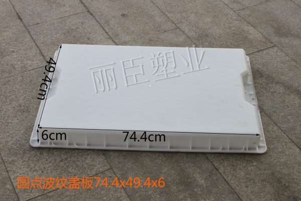 波浪紋防滑圖案設計的預制邊溝蓋板模具,根據人行實際需求,采用13道波浪紋突筋規劃,所預制水泥邊溝蓋板表面波浪線條凹凸有致,別具一格。主要水泥蓋板澆筑體積長度為74.4厘米,寬度為49.4厘米,高度則為6厘米,詳細請參考下圖: