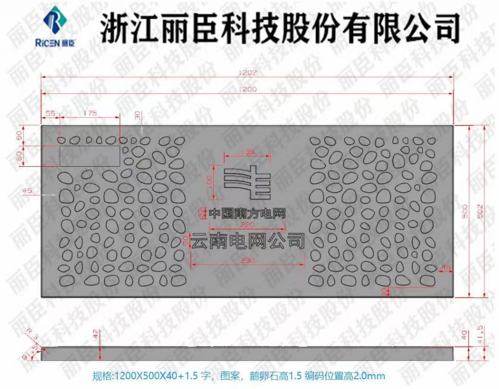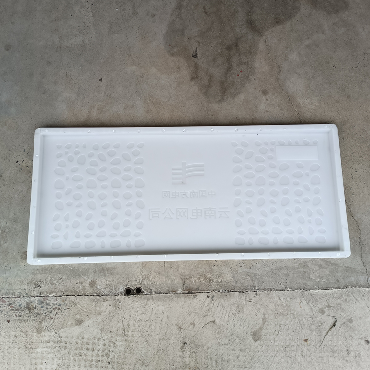 南方電網塑料模具、云南鵝卵石花紋電網模具,模具尺寸有五種款式長度分別為60、80、100、120、140,每20cm為一檔,寬度都為50cm。厚度為4cm,主要是在云南一帶使用,云南電網公司、該模具可包角鐵預制使用,兩邊含有小鵝卵石花紋,中間帶有南方電網標志。