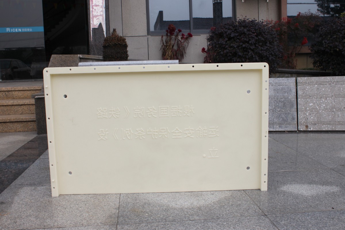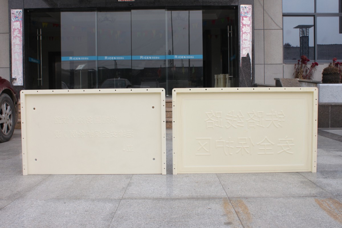標(biāo)識牌塑料模具主要的結(jié)構(gòu)為2快拼合而成。標(biāo)識牌總共分為2個部分:一面印有“國家鐵路安全線路保護區(qū)”字樣,另一面為“根據(jù)國務(wù)院《鐵路安全運輸保護條例》設(shè)立”字樣。此水泥警示牌模具為國家中鐵局定制,任何企業(yè)及個人制造都需國家鐵路局授權(quán)許可才可制造生產(chǎn)。